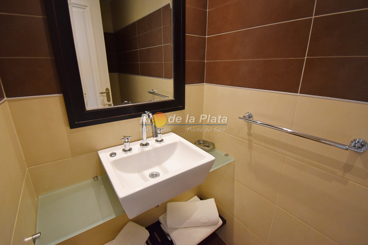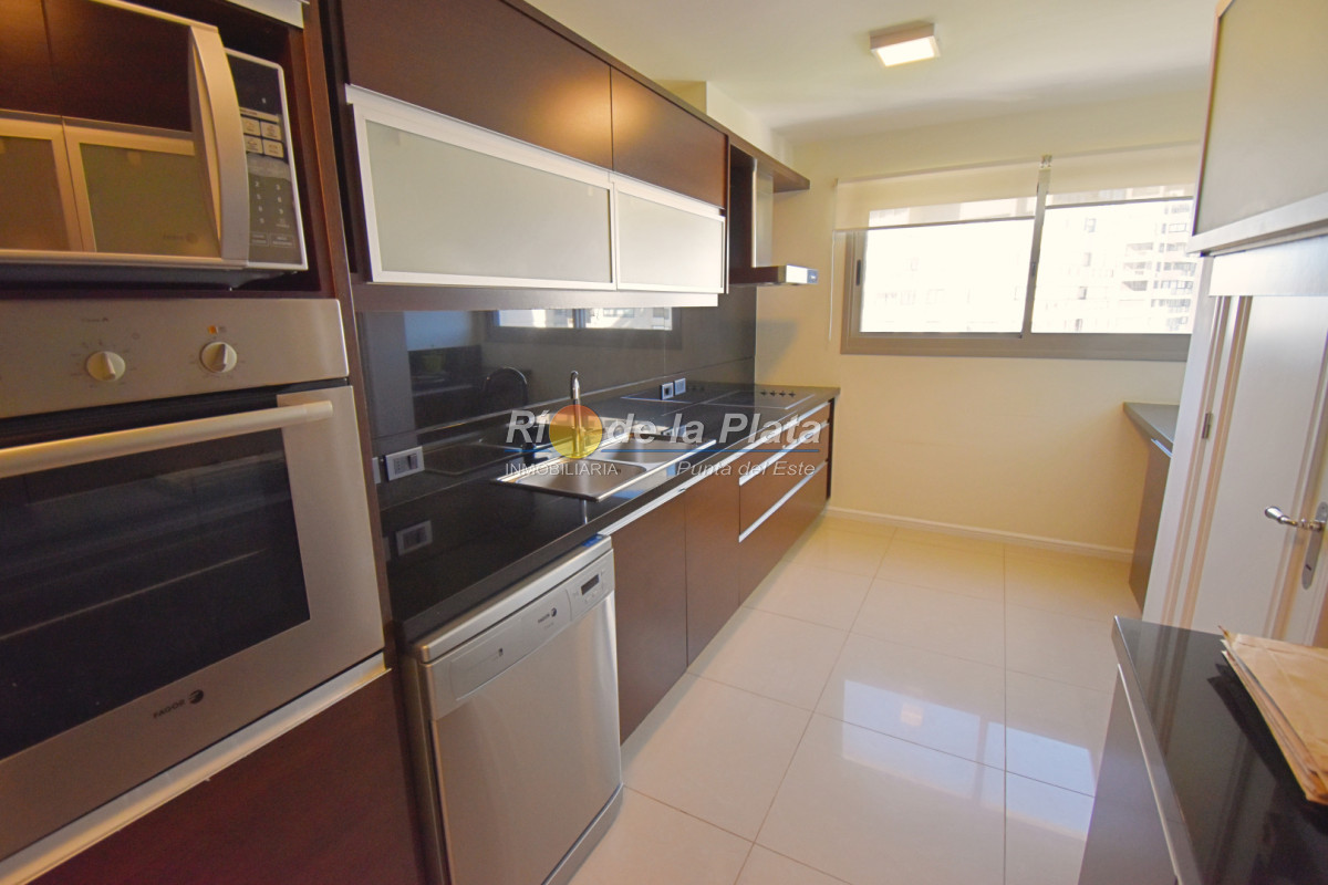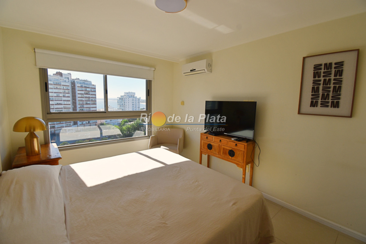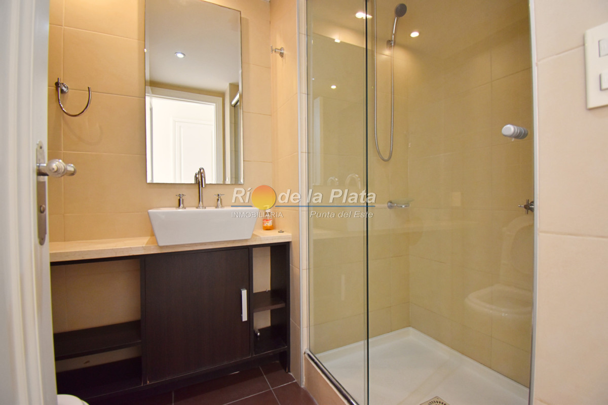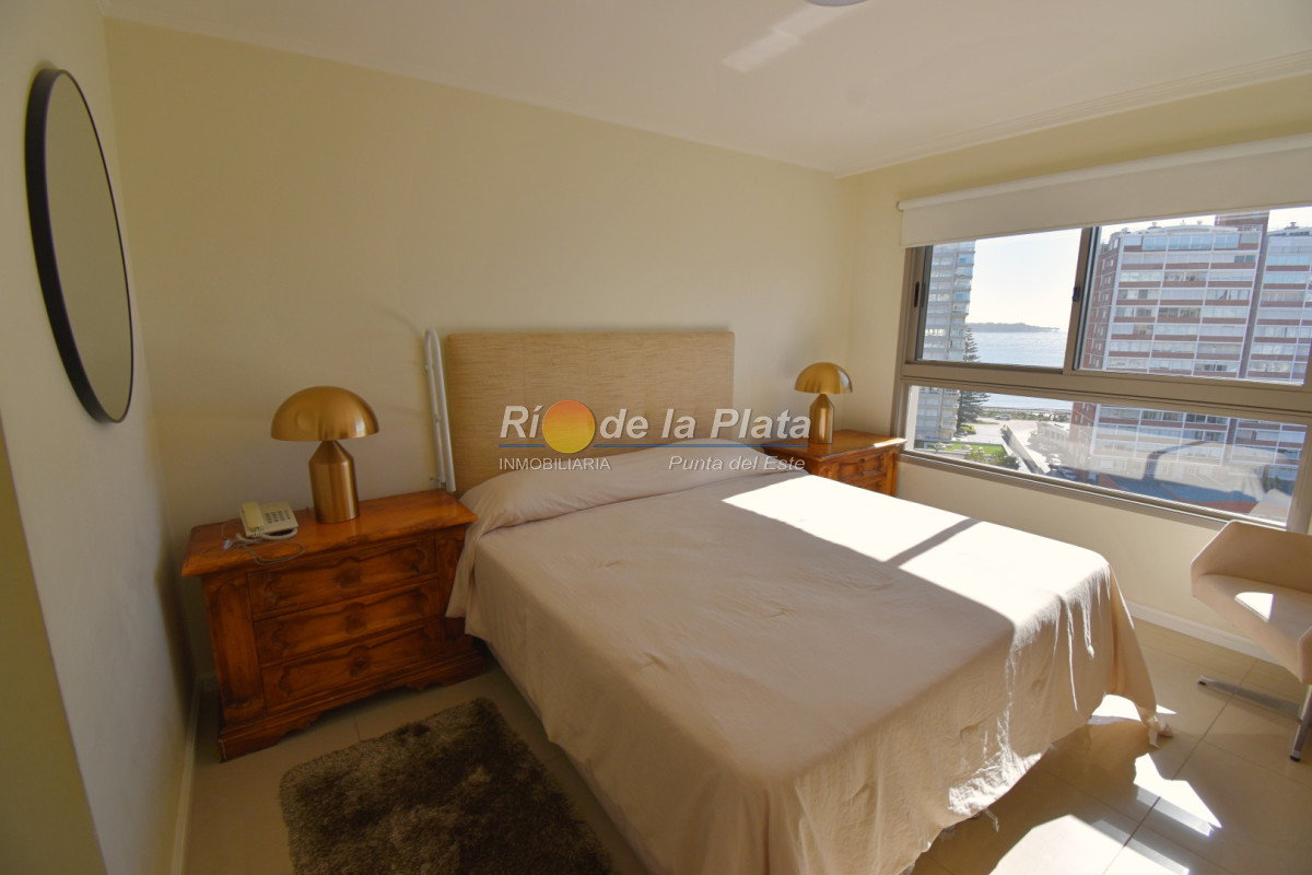 Cuenta con 2 dormitorios en suite, toieltte, living comedor con muy buena luz y vista a Playa Mansa, cocina, amplio balcon y gge.