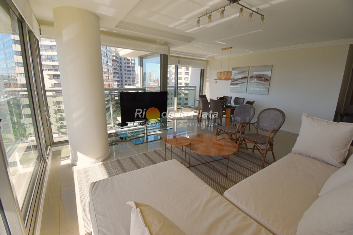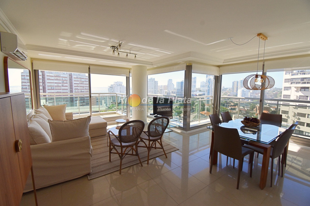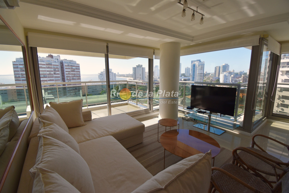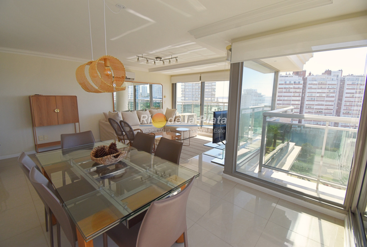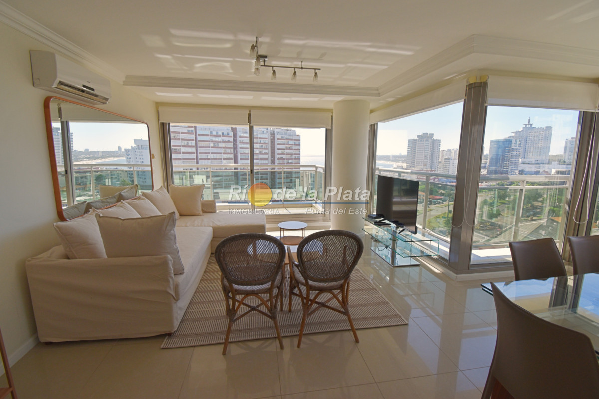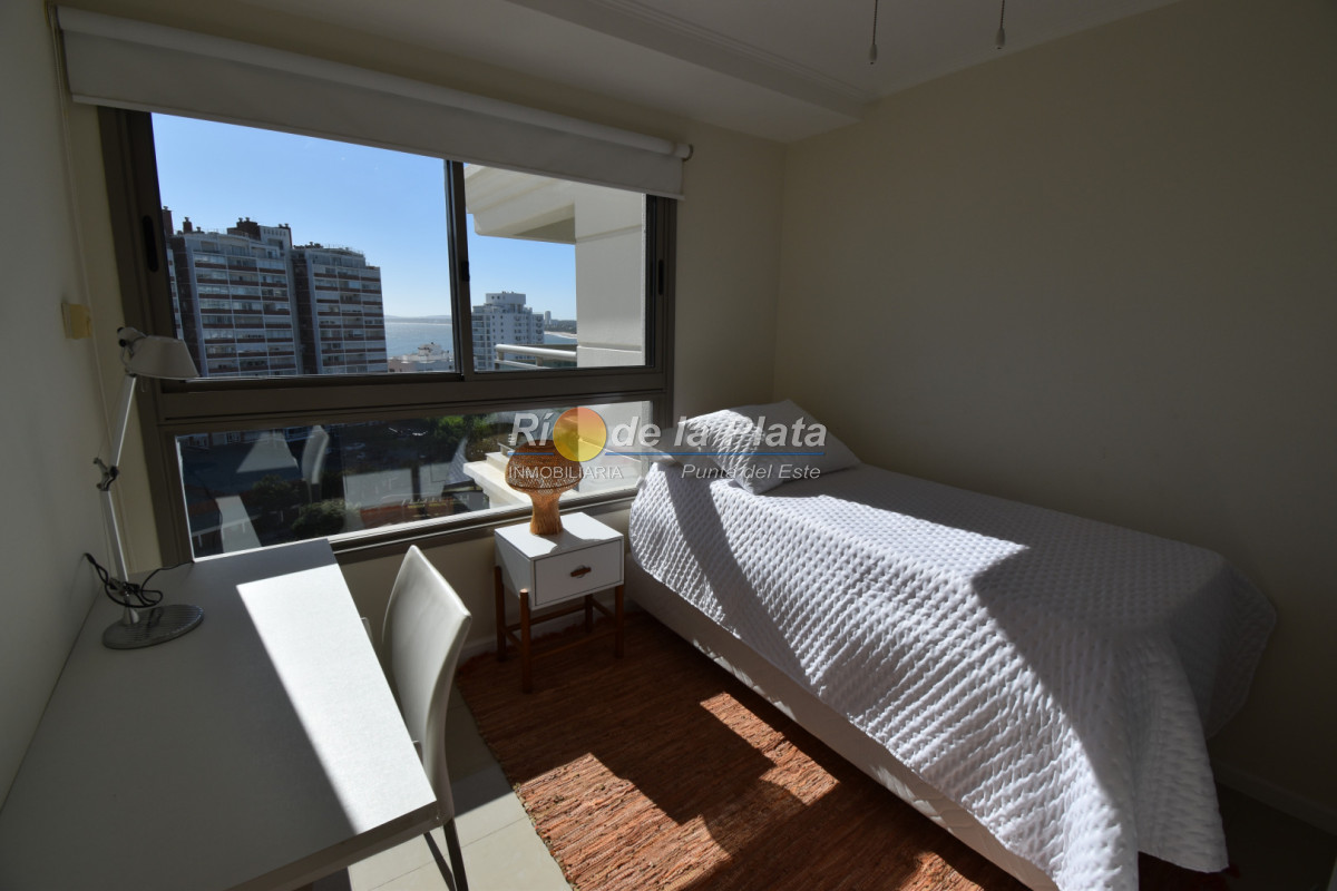 Cuenta con 2 dormitorios en suite, toieltte, living comedor con muy buena luz y vista a Playa Mansa, cocina, amplio balcon y gge.