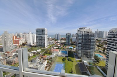 A pasos de Playa Brava cómodo apartamento, con gran living-comedor, terraza, baño social, 3 dormitorios en suite más dependencia de servicio, amplia cocina con office y garage.